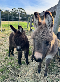 | Juliette is a very gentle 87.5% American Miniature Mediterranean jenny. She is friendly, halter trained and good with farrier. She loves being brushed and cuddled. She birthed a healthy, beautiful jenny foal in 2019. She wass a great mum and had no difficulties birthing. She is registered with Donkey All Breeds Society of Australia. Friends with Hayley, preference is for them to go together |