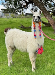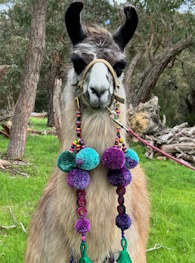 We are relatively new to the world of llamas and so far enjoying it immensely. We have started our journey with three young breeding females and plan to start our breeding program in 2026. Watch this space for future llamas available for sale. Our llamas are very friendly and interactive and we are enjoying going on walks and adorning them in our hand made gorgeous llama bling!