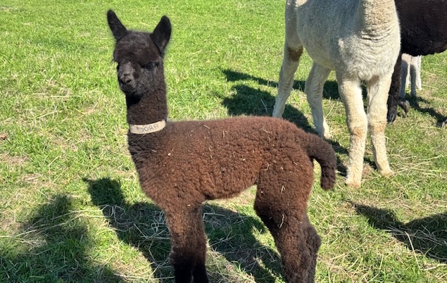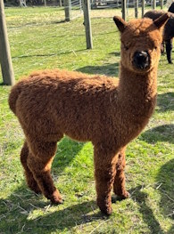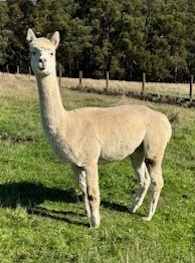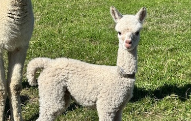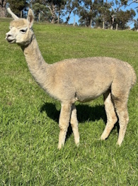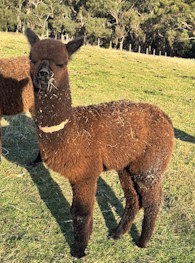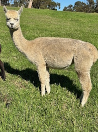 Ragamuffin is a very gentle breeding alpaca with a dense well aligned fleece. She is a good mother and had a lovely male cria in 2025. Currently not pregnant, mating can be provided. |